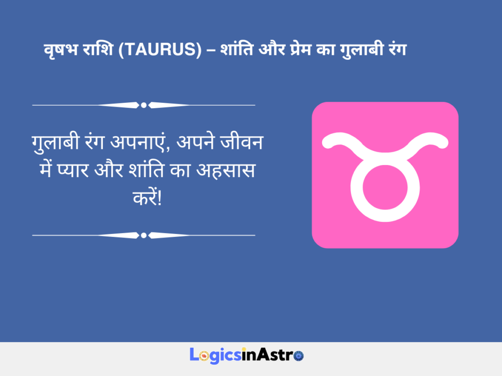 वृषभ राशि शुक्र ग्रह द्वारा शासित होती है, जो सौंदर्य, प्रेम और सुख-समृद्धि का प्रतीक है। गुलाबी रंग वृषभ राशि के लोगों के लिए विशेष रूप से शुभ होता है, क्योंकि यह कोमलता, स्थिरता और सौम्यता को बढ़ाता है।